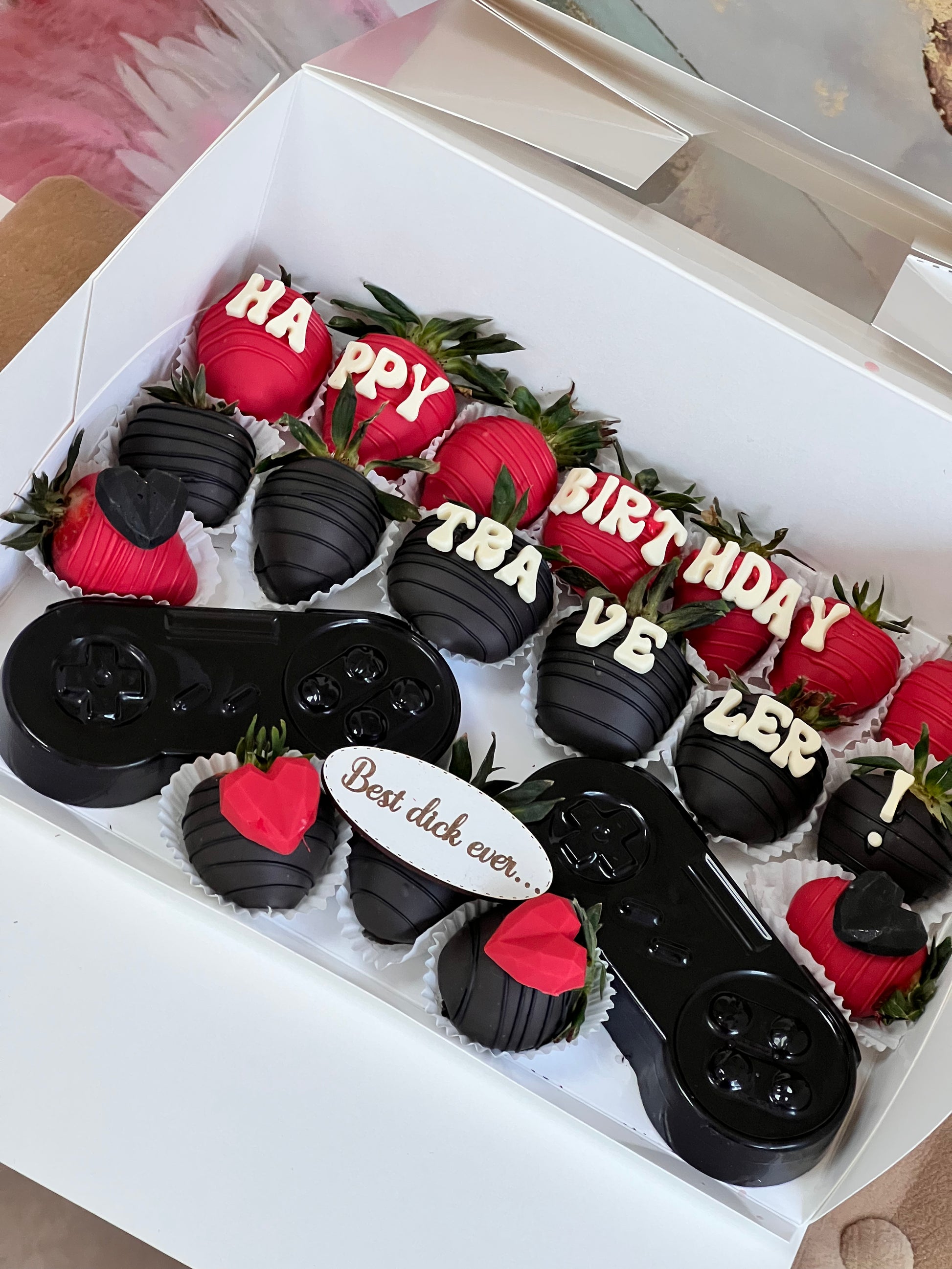 Box cu carcasa 3D ciocolata consola gaming, mesaj personalizat si figurine + placuta lemn cu mesaj standard (La multi ani! ,Te Iubesc!, Best dick ever)