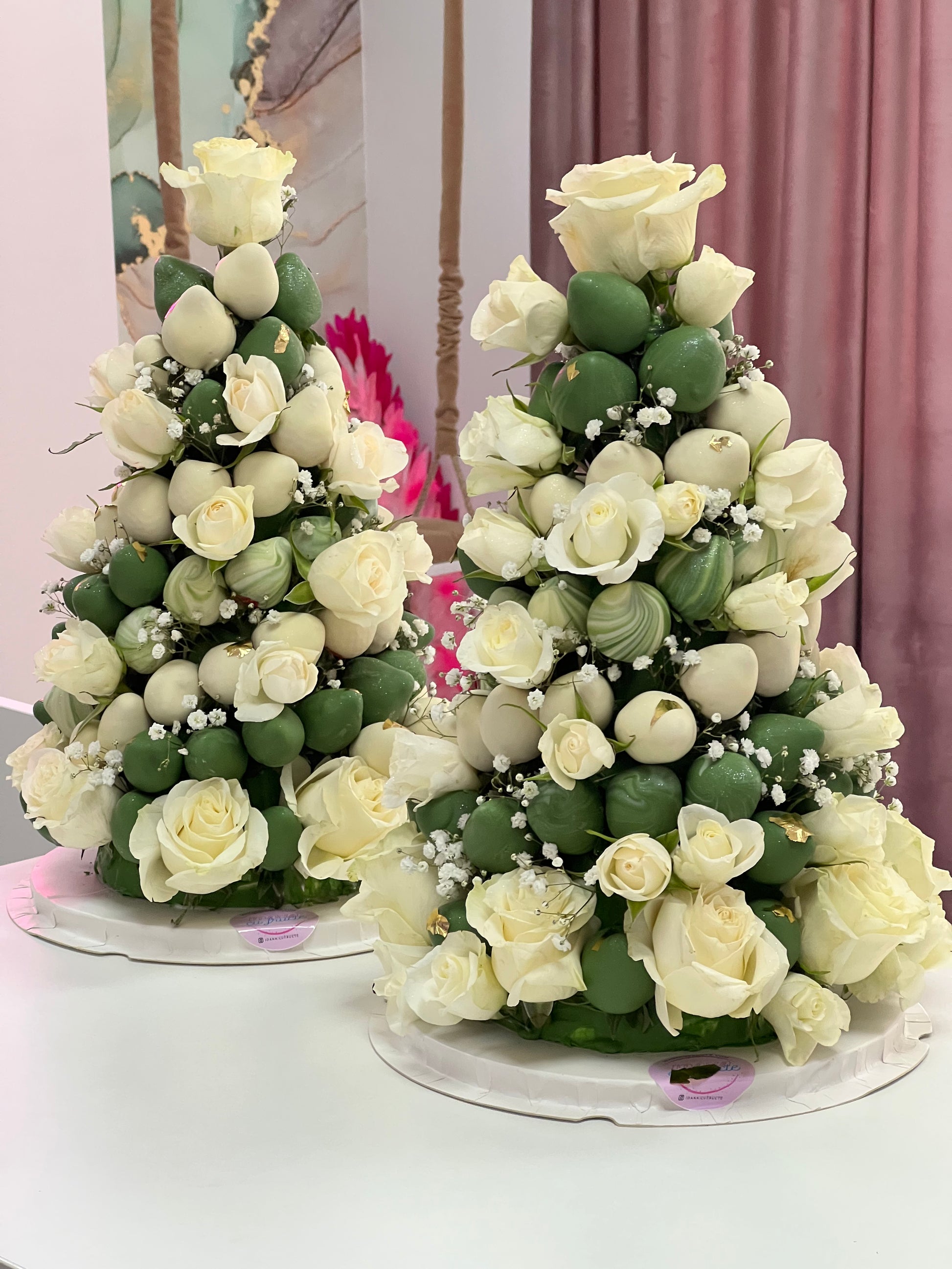 Turn aprox. 70 capsuni învelite in ciocolata. Reprezintă piesa de rezistența intr-un candy bar de poveste sau un “tort” original.