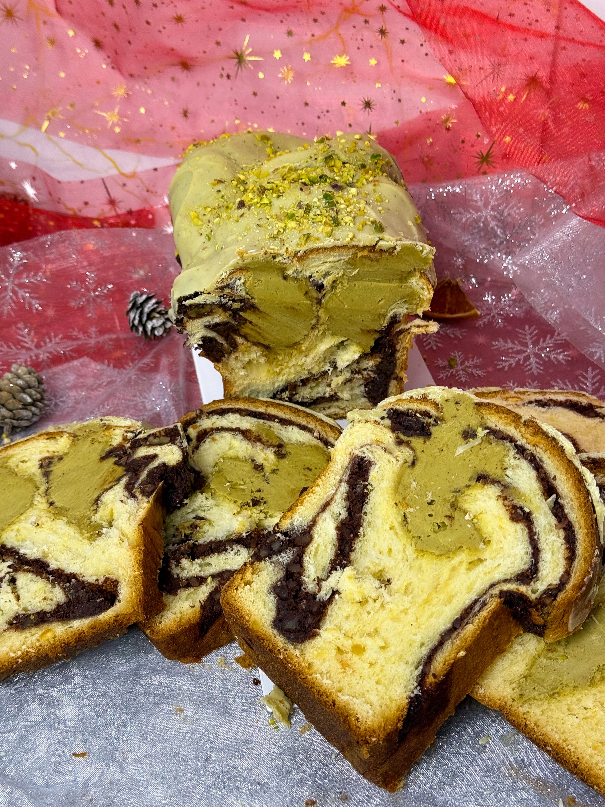 - Ingrediente: Faină, lapte 3,5 grasime, drojdie, ou, zahăr, coaja de lămâie, coaja de portocală, extract de vanilie, iaurt, unt 82% grăsime, ulei, miez de nuca, biscuiți, cacao, rom, ciocolata alba, pasta de fistic și fistic granule.